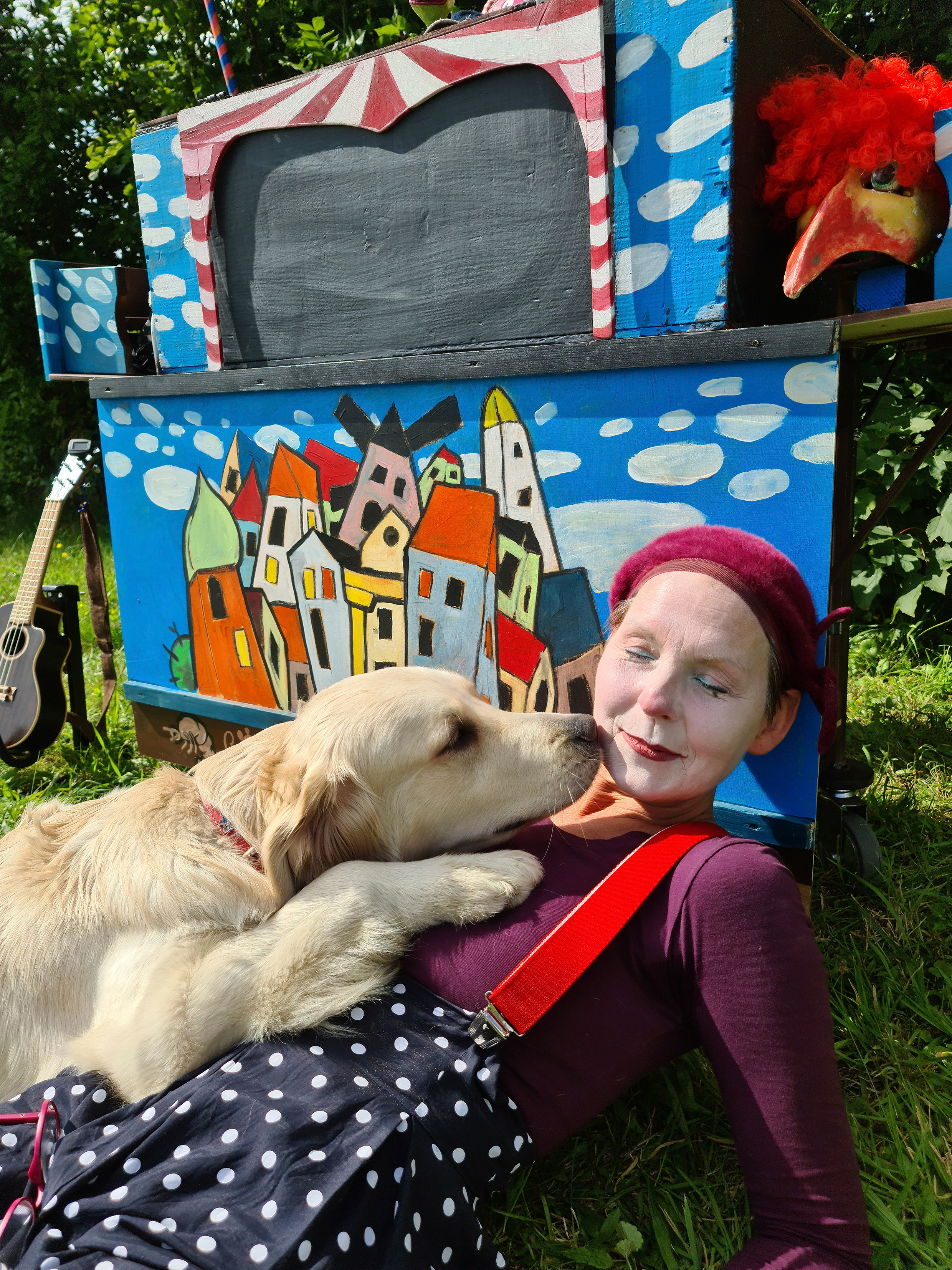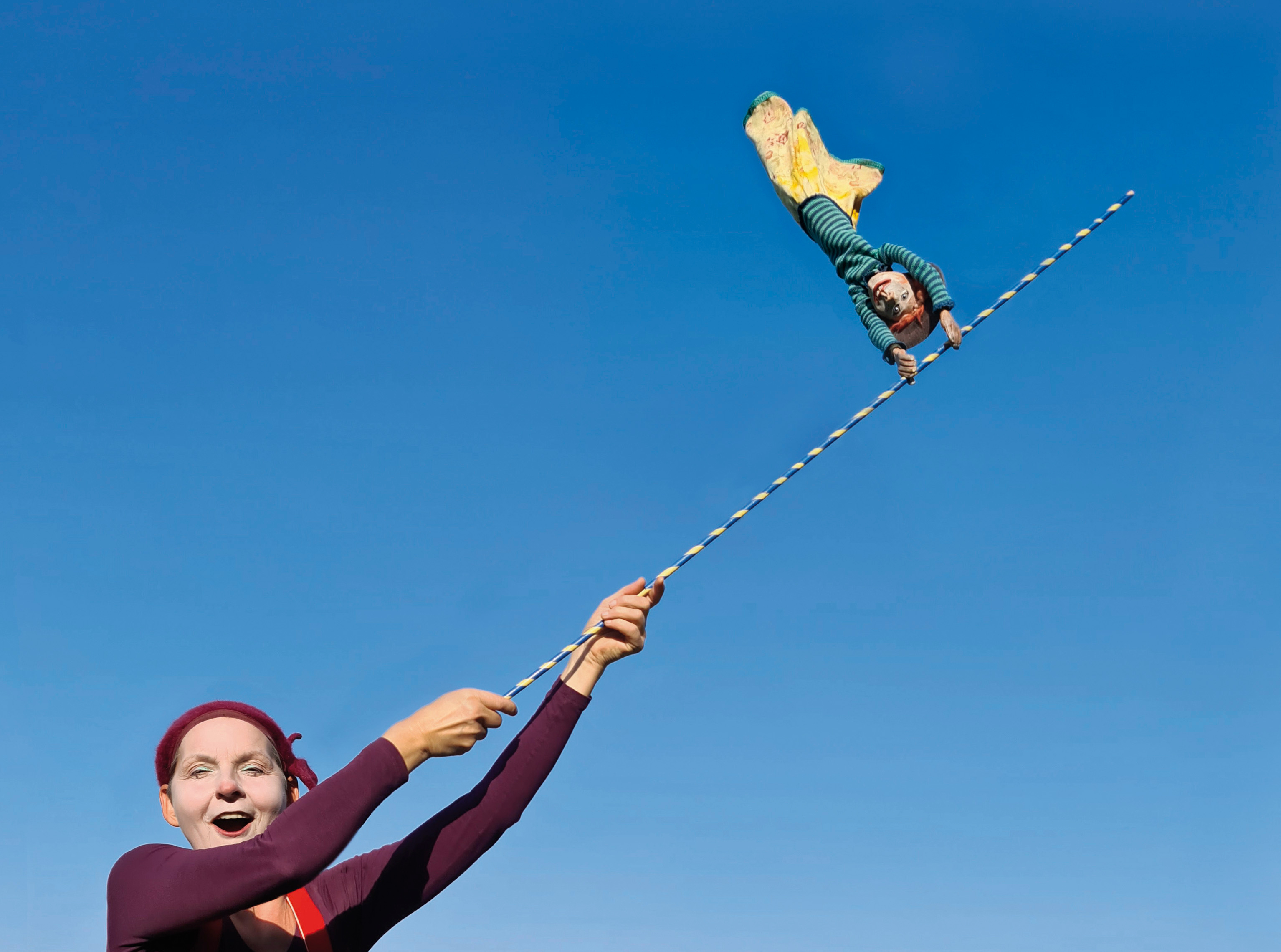 Schnörkelloses Straßentheater! Nur mit einem Koffer voller Requisiten und Improvisationen im Kopf, hinaus aus dunklen Räumen ins Freie, dahin treibt es die Puppenspielerin, weil Wahrhaftigkeit und Tiefe Einfachheit anstreben …